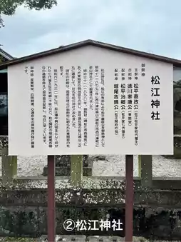 Horio Yoshiharu, the founder of the Matsue shogunate, and feudal lord of Matsue It enshrines Matsudaira Naomasa, Matsudaira Harusato, and Tokugawa Ieyasu.
