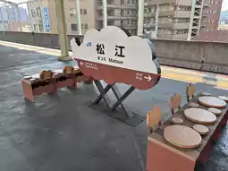 Matsue Station is the transportation hub of Matsue City, Shimane Prefecture. It serves the JR West San'in Main Line, and all passenger trains, including limited express and sleeper services, stop here. It's a great starting point for exploring Matsue and the San'in region. The station is elevated, with two island platforms serving four tracks. It features a "midori-no-mado-guchi" entrance, automatic ticket machines, and a stationmaster for convenient access. The station also houses the Shamine commercial facility, allowing passengers to shop and dine before boarding. In 2025, the waiting room was renovated to the "Yakumora-undi" design, inspired by the new "Yakumora" limited express trains, combining a modern feel with comfort.