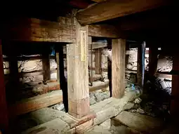 Some pillars are covered with cladding, secured with iron wheels or bolts to repair cracks or reinforce poorly made timbers, demonstrating the architectural ingenuity of the time. Slots (teppo slats and yaku slats) are located along each step of the keep, allowing for firing at attackers from various angles. The second step even has angled slots specifically for targeting climbers climbing the stone wall.