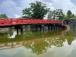 Once you enter the castle, you will first arrive at the castle park. The castle stands in the middle of the lake, increasing its defense capabilities. There is a big red bridge into the city, which is very much like that era.
