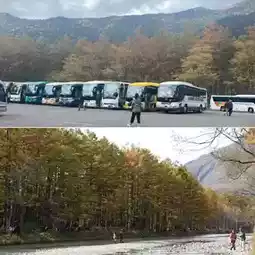 #Tokyo Travel In late October at Kamikochi, the leaves are changing colors beautifully. Red, orange, brown, yellow, green, dazzling. The air is very good, refreshing. We arrived very early in the morning, there were not many people yet. But around 10:00 a.m., many people started to arrive.