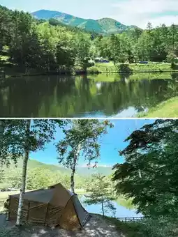 ▶︎ Located at an elevation of about 1,200m, this campground offers views of the birch forest and a fishing pond. ⛺️ The waterside bungalows are like something out of When Marnie Was There. 👩🦳