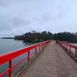 Fukuurabashi Bridge spans across Matsushima Bay like a crimson ribbon, elegantly connecting the main island with Fukuura Island. It is one of the most breathtaking landmarks along the Matsushima coast. This 252-meter-long 'Encounter Bridge' not only adds a vibrant touch to the blue sea and sky but also creates a stunning contrast with the 260 scattered islands around it, showcasing the unique elegance of Japan's three scenic views. Walking on the bridge, the islands of Matsushima Bay appear like a picturesque poem, with black and red pines adorning the strange rocks, and the shimmering sea reflecting the red eaves of Bentendo Temple in the distance, as if stepping into a Ukiyo-e painting. At sunset, the golden afterglow falls on the bridge, dyeing the sea and sky orange. At this moment, Fukuurabashi Bridge is praised as a 'romantic encounter' scenic spot. After nightfall, the bridge lights up softly, weaving a dreamy night scene with the starry sky, attracting countless travelers to stop and admire. The winding trails on the island lead travelers to explore hidden beaches and observation decks, overlooking the scattered islands like Kuno Island, and experiencing the serene beauty where nature and history blend. This red bridge, bearing the friendship between Taiwan and Japan, interprets the ultimate charm of Matsushima's 'one step, one scene' with its ever-changing seasonal landscapes.