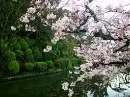 The moat still exists, forming a river that surrounds the park. When visiting during cherry blossom season, the beautiful blossoms reflect on the moat, creating a stunning scene. Climbing up to the observation deck on the castle ruins offers a wide view, allowing you to see Matsuyama Castle, Matsuyama City, and the cherry blossoms covering the mountains.