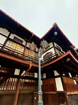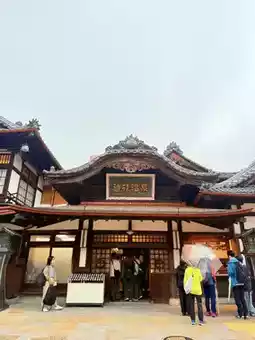 Speaking of Dogo Onsen, it is steeped in legends. According to mythology, the deity Ōkuninushi placed the ailing deity Sukunahikona in his palm and warmed him with the waters of Dogo Onsen. Miraculously, Sukunahikona recovered instantly and even danced gracefully on a stone. This stone, known as the "Tama no Ishi" (Jewel Stone), is enshrined on the north side of the main building.