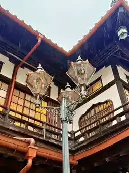 With its blend of history, folklore, and mythology, Dogo Onsen's status is unshakable. The main building, now renovated, exudes a rustic elegance. Admission fees range from 700 to 2,500 yen, offering access to different facilities. This time, I chose the first-floor "Kami no Yu" bath and the second-floor lounge. Inside, the renovated building uses floor projections to guide visitors without compromising the historical aesthetic. Soaking in the ancient bath, surrounded by stone carvings, history, and shifting light and shadows, while listening to Japanese visitors chat, felt like stepping back in time.