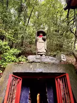 Emerging from the cave, I saw a statue of Kobo Daishi atop the rock formation. Suddenly, I felt a sense of understanding—perhaps, like the pilgrims of the Shikoku Pilgrimage, the process of visiting the eighty-eight sacred sites is a solitary quest for inner peace. Later, I researched Japanese sources and learned that this might be a site for Vajrayana practices, where observation, contemplation, and eventual enlightenment take place.