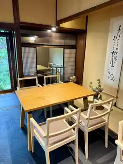 ・Atmospheric setting inside a renovated machiya (traditional townhouse)