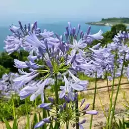 "The Seto Inland Sea's blue seen through agapanthus blooms 🌊💜 Experience the luxurious collaboration of sea and flowers at Lover's Pass."