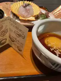 We enjoyed the unique flavors of Ehime, topped with fluffy seasoned rice and sea bream sashimi.