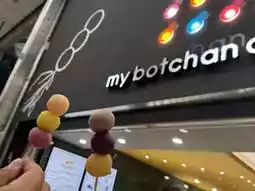 Everyone was taking pictures of the Botchan Dango 🍡. You can choose three flavors yourself, and they’re not only cute but also delicious.