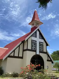 ⛪ Red Roof Church: The red roof with a hundred years of history, with green lawn and sea view, is very good for taking pictures!
