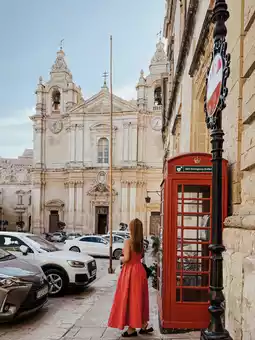 ~ Red Telephone Booth in front of Mdina Cathedral: Full of European charm📞