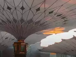 As the sun sets, Madinah’s courtyards fill with golden light, inviting visitors to pause, reflect, and soak in the beauty.