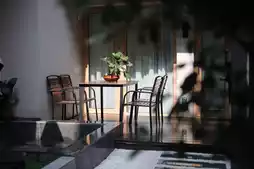 The windowsill of the guest room is a perfect spot for photography. Place a freshly brewed cup of tea there, gaze at the sea of clouds rolling over the mountain peaks in the distance, and rest your arm on the windowsill, letting your sleeve drape like flowing clouds. Shoot from a low angle, capturing the wooden beams of the inn, the mountain mist, and the horizon seamlessly layered together. In the afternoon, sunlight filters through the forest leaves, casting dappled shadows on the inn's terrace. Pull up a wicker chair, sit down with an old book in hand, and as the pages turn, press the shutter. The tranquility of the mountains and the leisurely charm of the inn are perfectly frozen in time.