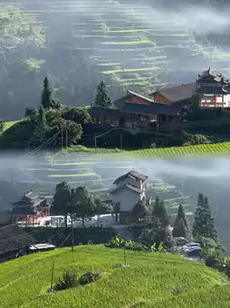 It's a mountain village nestled among rice terraces.