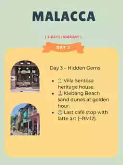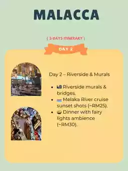 • 🛶 Melaka River cruise sunset shots (~RM25).