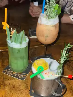 Additionally, the bar offers a variety of other creative concoctions, including the Sakura Blue, a sake-based drink with grapefruit juice and Himalayan salt, and Wo De Mei Ren, both praised for their unique flavors .