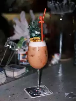 • Made for Baba: A robust blend of bourbon, Amaro di Angostura, and cinnamon, presented under a dome of smoke and accompanied by a cinnamon stick and caramel popcorn .
