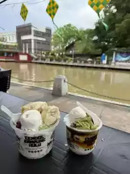 - Cendol Kampung Hulu: Dessert spot, the eatery boasts a cozy atmosphere with seating that offers views of the Melaka River.
