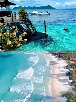 Boat from Kota Kinabalu hotel pier → Snorkeling at Mamutik Island (see clownfish right from shore!) → Sunset at Tanjung Aru Shangri-La, one of the top 3 sunsets 🌅