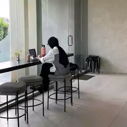 The music is bearable, allowing you to focus on your work and engage in semi-formal discussions. Also, for food we tried their Fried Calamari too and that was just ok. Their Wifi was fast enough, did some online meetings