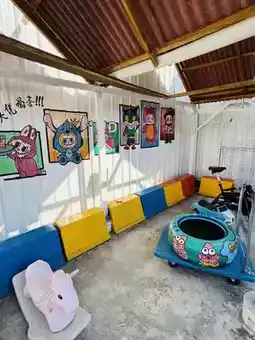 From the vivid blues of the traditional houses to the vibrant reds and yellows of the playground, this temple complex is a dream for anyone who loves bold colours.