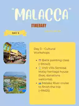 • 🛍 Explore Jonker Street for traditional crafts (~RM15).