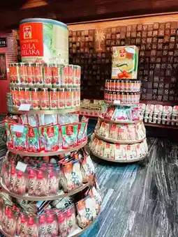 A visit to Jonker Walk isn’t complete without stopping by Tan Kim Hock, a legendary store known for offering authentic local Melaka products. This charming, heritage-style shop is famous for its wide selection of traditional snacks like dodols, belacan, gula Melaka, and preserved fruits, all proudly made with original recipes. The store’s nostalgic facade and vibrant interior make it a favorite Instagram spot, drawing visitors in with its old-school charm and colorful product displays.