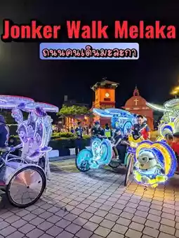 Jonker Walk Melaka, Malacca, Malaysia, is a pedestrian street that opens in the evenings. It offers food, souvenirs, and bikes for cyclists. The atmosphere feels like an old city. It's a wonderful way to enjoy a stroll at night. Enjoy the atmosphere of the old city at night, and you'll feel both happy and satisfied. I love traveling to Malaysia because of the wide variety of Halal food available. While the flavors aren't as intense as those in Thailand, they're deliciously Malaysian. #Malacca