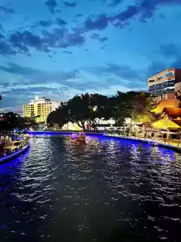 As night falls, the Malacca River Walk near Panggung Bangsawan Bridge transforms into a dreamy riverside escape. The reflections of colourful lights ripple across the water, while the bridge’s elegant arches frame the perfect evening stroll. Street performers, cozy cafés, and the faint melody of local tunes fill the air, blending nostalgia with modern vibrance. It’s where heritage meets heartbeat — a magical moment where every step feels like part of Malacca’s living story.