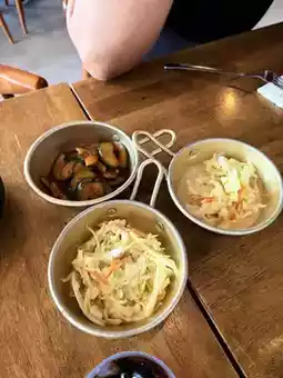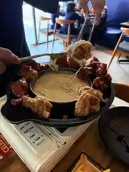 Their signature Korean fried chicken—crispy on the outside, juicy inside—is the star of the menu, available in a variety of flavours like spicy, honey garlic, and cheesy. The kimchi fried rice and tteokbokki also stand out as delicious sides. Portions are generous and reasonably priced.