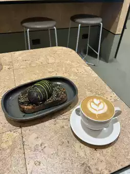 A must-see for coffee lovers! A popular roaster that supports Melbourne's coffee scene. Although it's a small shop, the quality is top-notch, and I ordered a flat white and a cinnamon roll! ☕️