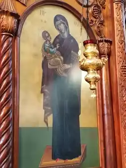 It's so beautiful inside as well as outside. The stained glass windows have beautiful colours on them, and the icons even more so! Our favourites include but aren't exclusive to, the beautiful icon of the Resurrection, the Trinity, and where Mother Mary lifts up her hands in prayer! Byzantine iconography is one of our favourite art forms!💒