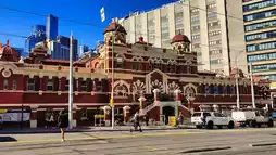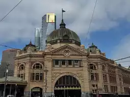 An iconic structure in the heart of Melbourne, this is the busiest train station in Victoria, accommodating the entire metropolitan rail system, 15 tram routes to and from the city, and V/Line services to Gippsland. Opened in 1854 by the Melbourne and Hobson's Bay Railway Company, the station—though not the current building—is the oldest in Australia. Starting from 2025, the Flinders Street station complex will expand with the opening of the nearby Town Hall rapid transit station beneath Swanston Street, offering several new entrances in the area.