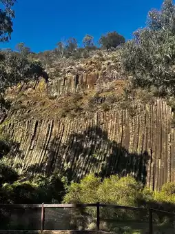 The park is a compact yet scenic reserve, set along Jacksons Creek with rugged cliffs, grassy slopes, and native vegetation. The geological formations dominate the landscape, complemented by bird calls and the quiet flow of the creek, creating a peaceful retreat only minutes from the city.