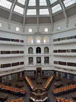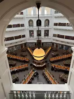 The highlight for me was definitely the La Trobe Reading Room. This library features a massive octagonal dome ceiling, with tables and lamps beautifully arranged in circular patterns. The atmosphere is serene and truly awe-inspiring, making it an ideal spot for reading or working. Just sitting and admiring the beauty of this room is worth the visit.