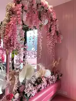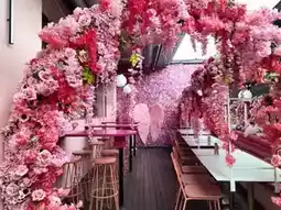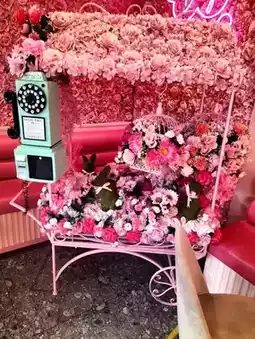 It's a gorgeous set-up of pink and flowers and all things feminine! Perfect for a girls' day out!🌸💗