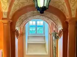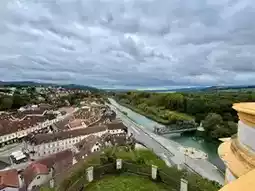 Step inside its grand halls to marvel at frescoed ceilings, the marble hall, and a library filled with thousands of ancient manuscripts. The abbey church, with its gleaming domes and gilded altars, radiates pure splendor. Outside, the terraces offer panoramic views of the river and surrounding vineyards — a view that feels straight out of a fairytale.