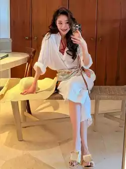 The second outfit was a linen set + Hermès square scarf. The all-white look paired with an orange Hermès scarf tied at the waist made the whole outfit much more lively.