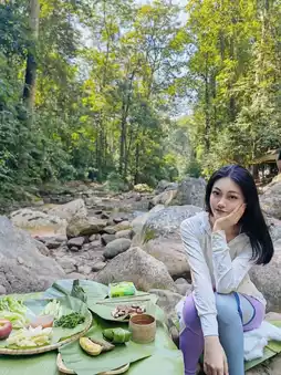 Picnics inside are also charged, I forgot how much, per person. Sitting by the mountain stream to eat, the barbecue is delicious.
