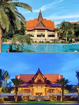 Thai-style architecture hidden in the rainforest, rooms surrounded by greenery