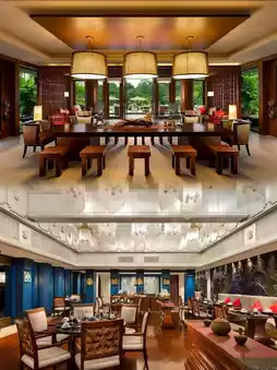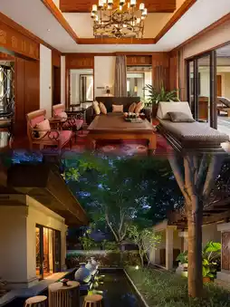 Xishuangbanna Anantara Resort draws design inspiration from the ancient Dai culture of Xishuangbanna, blending traditional Dai stilt-house architectural elements like raised floors, sloping roofs, and exquisite wood carvings to create an authentic Dai ambiance.