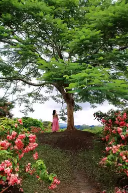 Home to pink paper fan flowers and the "movie tree," this area blooms year-round. The uphill path offers breathtaking views, perfect for photos and videos.