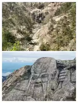 It is the iconic landscape of Guimeng, and was included in the Guinness World Records in 2004 as the world's largest mountain carving, three times the size of the Leshan Giant Buddha.
