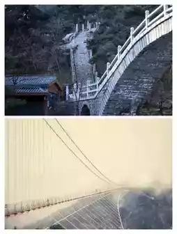 ✅Glass Bridge: A 5D glass bridge on a mountain peak, where the glass on the bridge will show a shattering or fairyland effect.