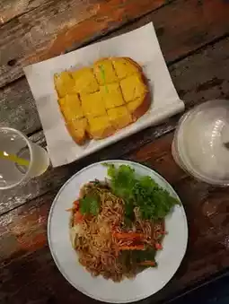 Come sit and watch the Nan River, cool breeze in Phitsanulok. The atmosphere is very good. There are many menus, both food, desserts, snacks, milk, bread. We ordered spicy instant noodles with bread and cold milk. It was delicious. Looking at the atmosphere of Phitsanulok at night is also beautiful in another way. This shop is opposite Wat Nang Phaya, not far from Wat Yai. There are many shops next to each other, but I chose this shop because my friends recommended that I come and try it. It was quite okay. #Get a discount without relying on luck