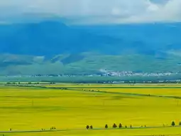 Menyuan Rapeseed Flower Sea is not only a magnificent natural wonder but also a place rich in cultural charm. Due to time constraints, I couldn't frolic in the flower fields and had to settle for admiring the view from the platform—a bit of a regret. The golden rapeseed flowers, set against the green mountains, blue sky, and white clouds, create a scene straight out of a painting.