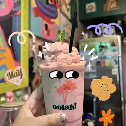 #Travel to save the world ☕️🌤️✨ Another very cute coffee shop is recommended. 💗🖼️ This shop is colorful and not only sells coffee. They also sell many cute things. 👟👟 Whether it's shoes, dipping boxes 🥤stickers, pins, and knickknacks, I want them all. ✨🌸🍇🫐 I like that this shop sells smoothies where we can choose fruits. 🥯🍞 They also have various bakery items. 🧋🥤🧃 This is another meeting place for Filipino teenagers.