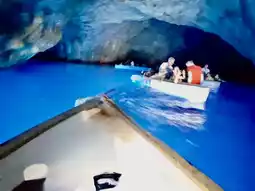 Traveling by sea, take a regular ferry from Sorrento to Capri Island. Then, board a medium-sized boat and wait in line on the water to transfer to a small boat—all for the chance to visit the must-see hidden gem of a lifetime: the Blue Grotto (Grotta Azzurra)!